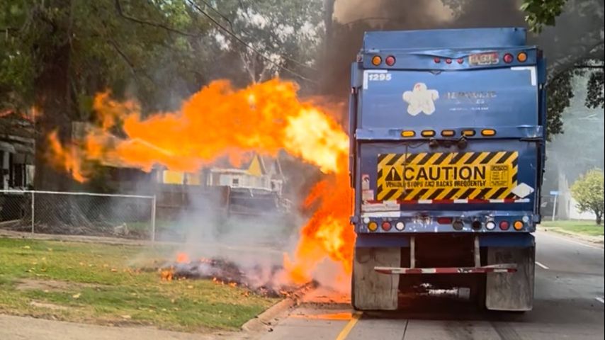 BATON ROUGE - Firefighters extinguished flames that were shooting from a Republic Services trash truck making its rounds Tuesday afternoon.