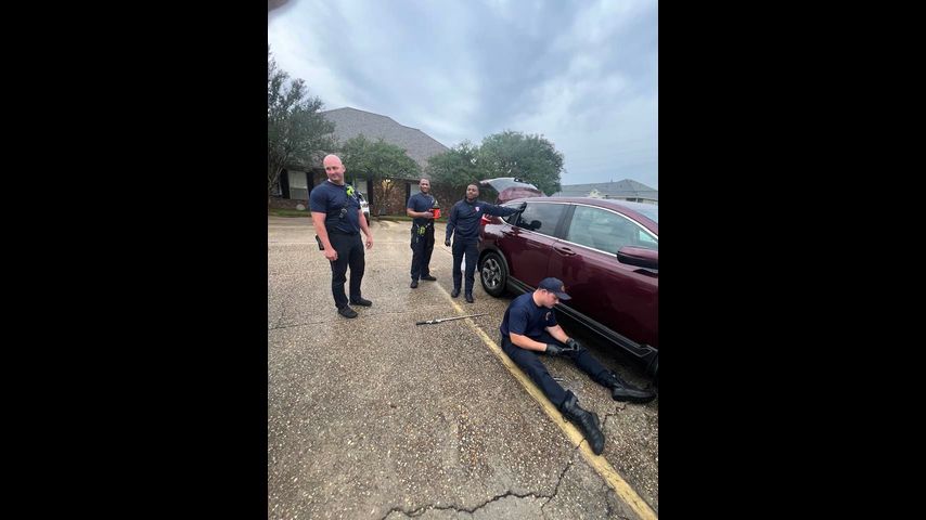 Multiple firefighters from the Baton Rouge Fire Department came to the rescue and removed four little kittens that were trapped.