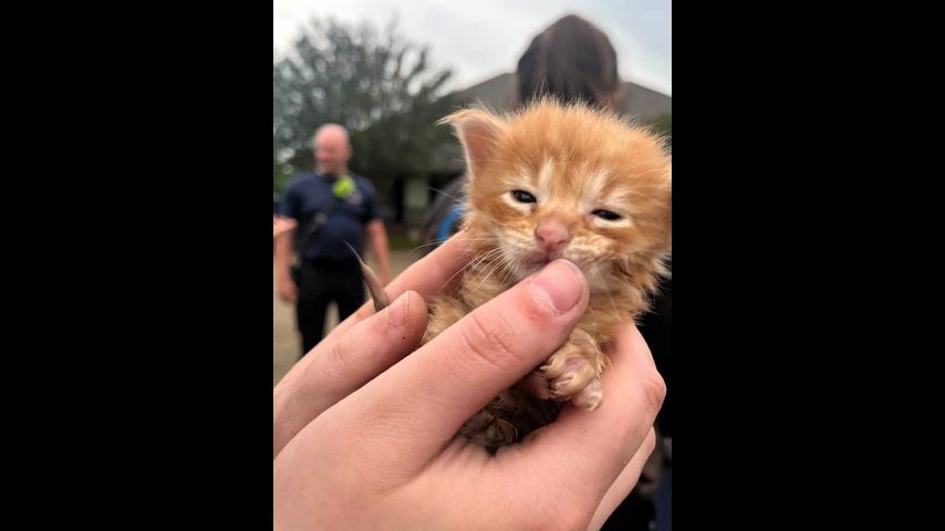 Feline rescue Cat Haven said that a woman drove into the parking lot Tuesday right before they were closing for the evening. They said she was frantic, telling rescuers she heard tiny meows coming from underneath the hood of her vehicle.
