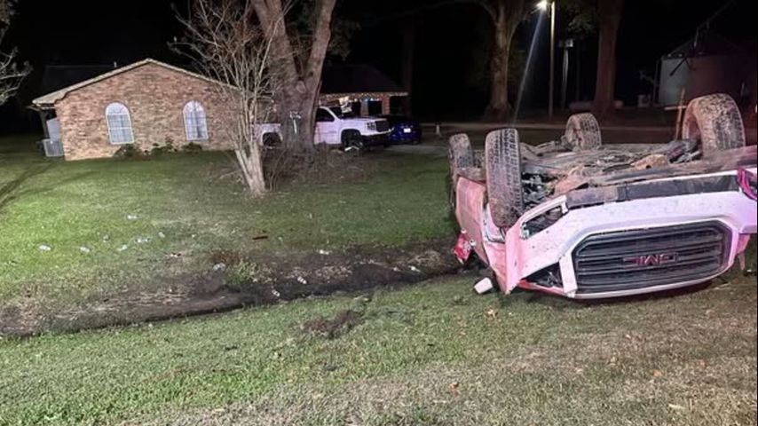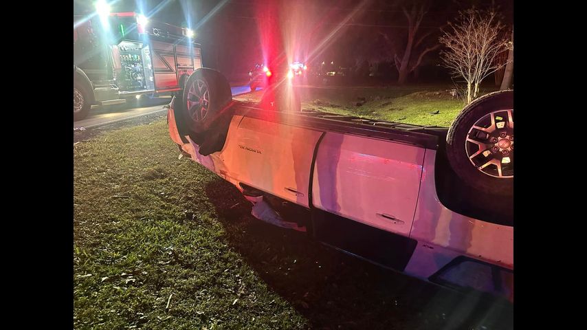 Pointe Coupee Fire Districts 1&2 shared photos of the flipped car, which landed off the road and in a ditch near a home. Officials said six crews were at the scene.
