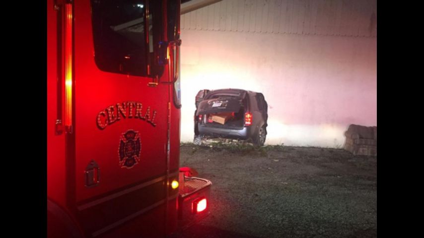 The fire department says the SUV was almost entirely inside of the building after it apparently crashed through the outside wall. Firefighters soon freed the driver, who managed to walk away from the crash without injury.