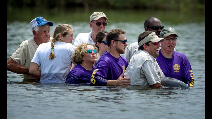 GRAND ISLE - Coastal Wildlife Network leaders say the first dolphin to be rescued, rehabilitated and released off the coast of Louisiana is doing well in the wild.