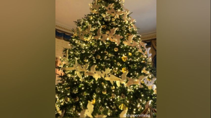 In the Blue Room, the official White House Christmas tree celebrates peace and unity and is decorated with peace doves carrying a banner embossed with the names of each U.S. state and territory. The White House says it’s a reminder of the importance of unity & national harmony. pic.twitter.com/2uWT1vVqtW