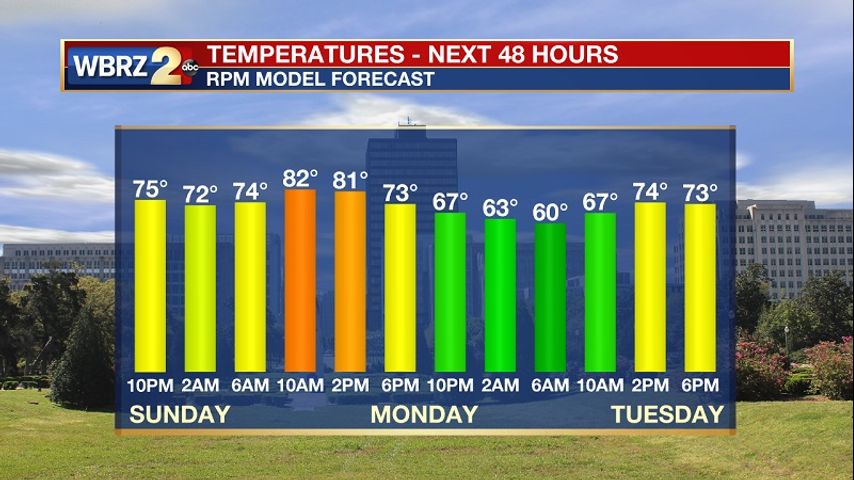 Tomorrow: The morning will start off mostly dry, with building clouds. There could also be patchy fog around, so be aware if you are going to be traveling early in the morning. Showers and thunderstorms will become more numerous by the afternoon, ahead of a cold front. Highs will be in the mid 80s, but once the front passes, temperatures will begin to fall into the 50s.