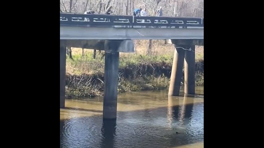 The Iberville Sheriff's Office said a person fishing near the bridge pulled the victim out of the water and helped get him to paramedics.