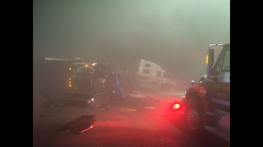 Acadian Ambulance said two people were taken to an area hospital with minor to moderate injuries from the scene. State Police said they were investigating whether or not the combination of fog and a possible mixture of smoke from nearby burning cane fields may have contributed to causing the wreck.