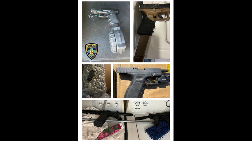 - three firearms seized (2 AR pistols and 1 tan Glock, which was stolen and had an auto-sear “Glock switch”)