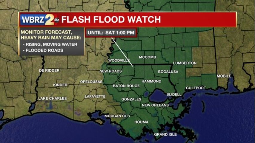 BATON ROUGE – The area is under a flash flood watch ahead of day-long rain Friday and into Saturday morning.