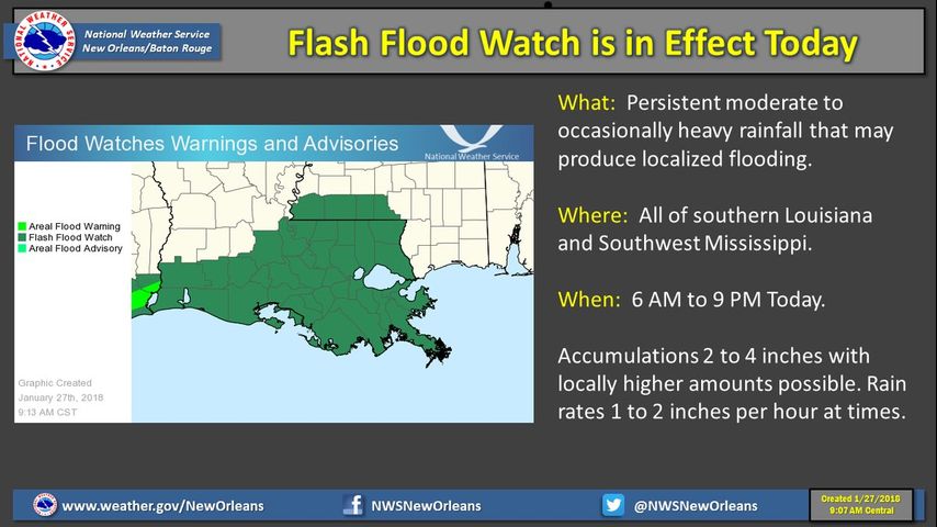 According to the National Weather Service, the flash flood warning was set to expire at 1:00 p.m. A flash flood watch for southern Louisiana will continue until 9:00 p.m. Satuday.