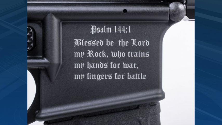 The Spike's Tactical Crusader is a new version of the AR-15 assault rifle with the Bible verse Psalm 144:1 laser-etched into the weapon and is adorned with shield and cross decorative elements. The safety selector bears the words "Peace" for safe, "War" for semi-automatic, and "God wills it" on the reverse side in Latin.