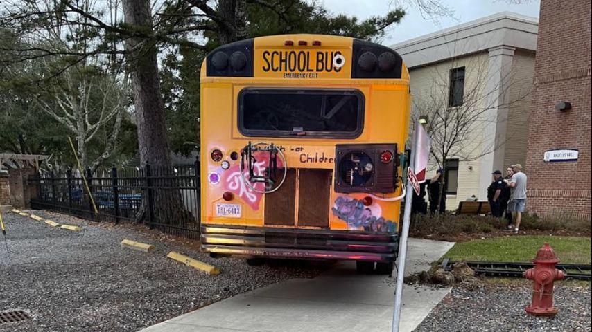 Florida woman with blowtorch crashes graffiti-covered school bus through Covington school fence