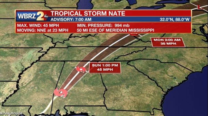 Tropical Depression Nate currently has maximum sustained winds of 35mph and is moving at considerable speed through Tennessee. This is good news as the storm won't be sitting over other areas of the United States and dumping rain.