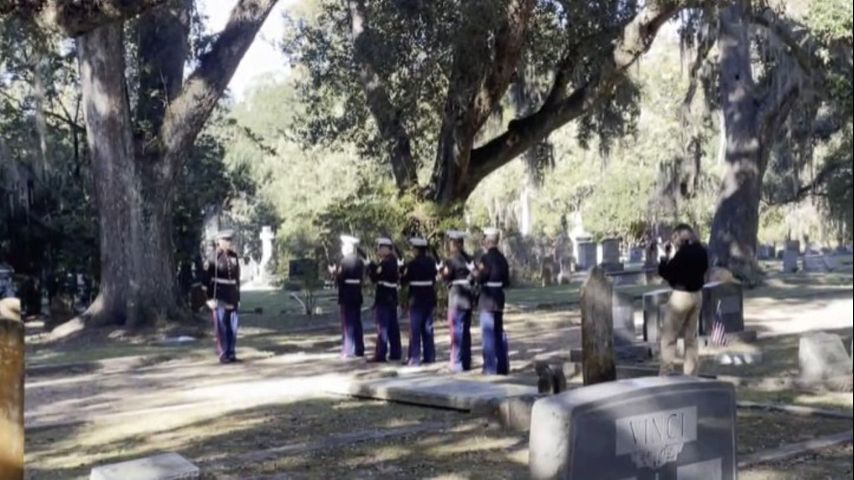 At the end of the service, a wreath is laid on his tombstone, and Marines pay respect with a final salute. It gives all in attendance a chance to reminisce on the man that he was.