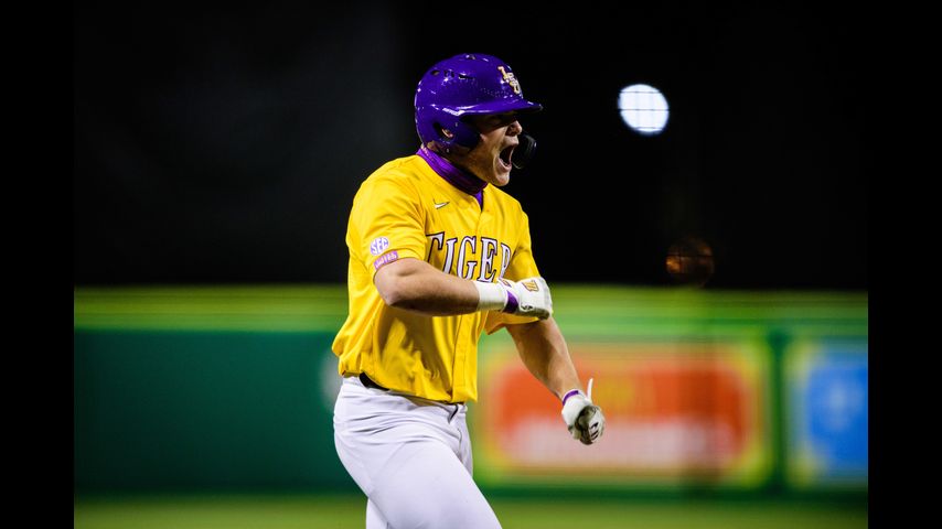 LSU opened the first inning with a single up the middle by freshman first baseman Tre' Morgan to get on base. Then, Cade Beloso homered to right field to score Morgan and give LSU a 2-0 lead.
