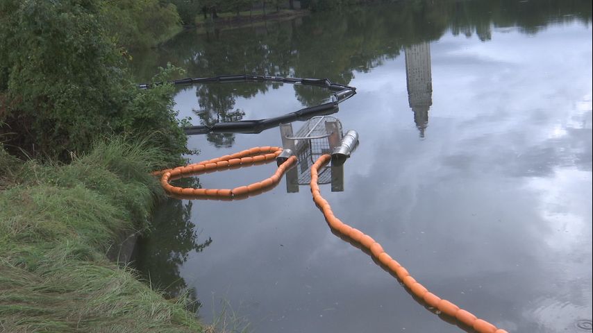 The first device is called the litter boom, which is a floating barrier installed at locations where stormwater flows into the lake.