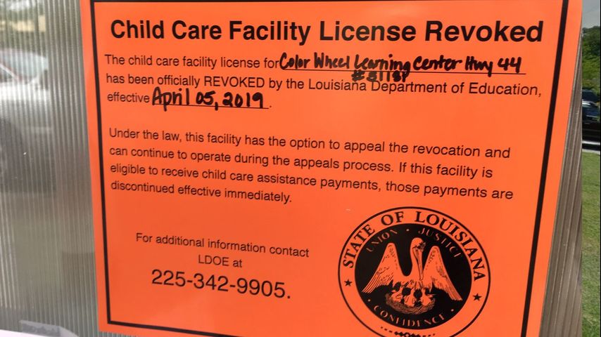 Color Wheel Learning Center has three locations: The one where the license was revoked in Prairieville, a second also in Ascension and a third in Baton Rouge.