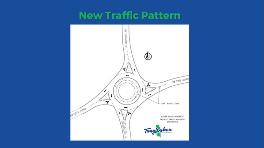 "Temporary signs, barricades, striping, and cones will direct traffic around the new roundabout configuration," Miller said. He urged motorists to drive slowly and "exercise patience" while maneuvering through the new traffic pattern.