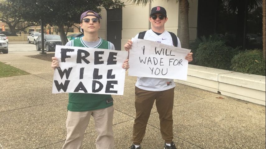 "Free Will Wade! That's our Coach! It's our fallen brother!" the two students chanted as they stood outside holding signs that read "Free Will Wade" and "I will Wade for you."