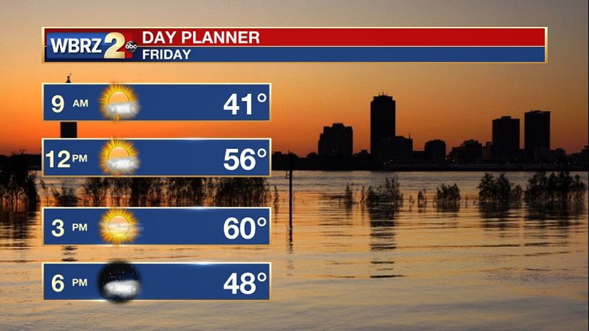 Today and Tonight: Almost all of southeast Louisiana is starting off at or below freezing this morning, so have the heavy coat ready to go and give yourself some extra time to warm up the car before you head out the door. This afternoon, we'll have plenty of sunshine with high temperatures near 60. Tonight, look for an increase in cloud cover with lows in the mid 40s.