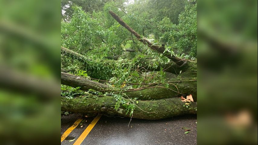 Central Fire Department said the tree fell along Frenchtown Road between Country and Planchet roads around 4:45 p.m. Department of Public Works employees have been called out to help remove the tree.