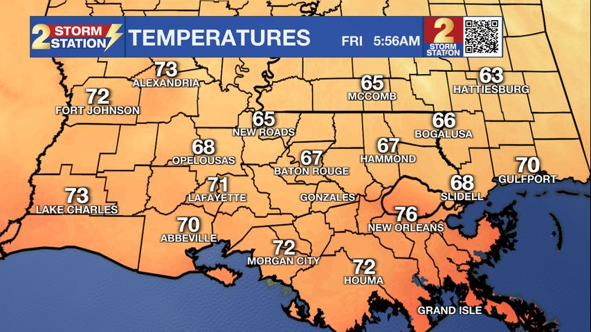 Today & Tonight: A forecast high of 94° today will flirt with the record high of 95° set in 1933 and 1953. Mostly sunny skies will dominate all day with the chance to see a passing shower remaining mainly in our southern parishes. We will still be muggy today but drier air is in store for this weekend. Tonight, temperatures will dip into the 60s for the first time this week for a relatively cool start to your Saturday morning.