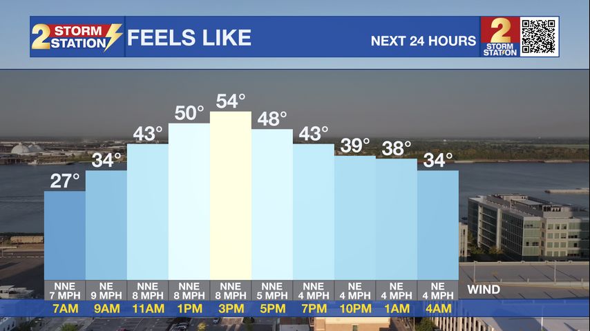 Today & Tonight: As stated above, Friday morning will be quite frigid. A cold front that moved through yesterday delivered a blast of extra cold and dry air to the region. Temperatures around the Capital Area will hang around the 32° mark by sunrise, but feel even colder thanks to the northerly winds. Wind chills, or feels-like temperatures, Friday morning will make it feel like temperatures are in the 20s most areas. Make sure to wear plenty of layers when stepping outside earlier in the day. Plenty of sunshine will filter through high clouds today, but afternoon temperatures will only warm into the mid-50s.