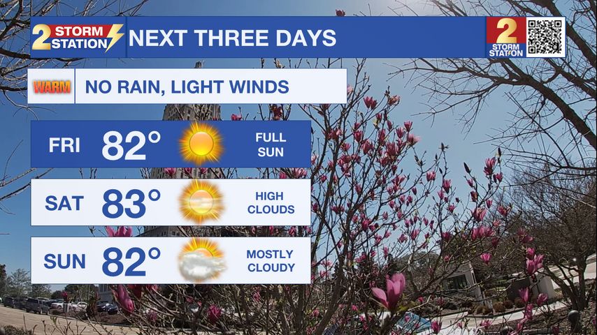 Warm and dry conditions continue through the weekend. By Sunday, more clouds move in ahead of rain chances next week.