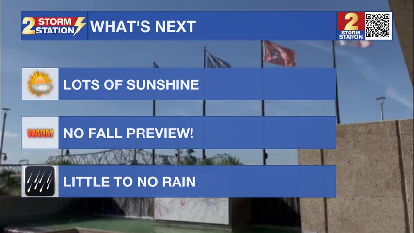 We have officially kicked Francine out, and much better weather conditions will follow. The next three days will be characterized by warm temperatures, lots of sunshine, and little to no rain chances.