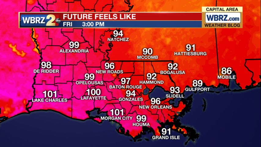 Up Next: Temperatures will be in the low 90s with the heat index scratching 100. A heat advisory may be reissued over the weekend to encourage all to exercise caution in the heat even though we have had hotter days this year. These same dry conditions will continue through the weekend. Overnight temperatures will dip into the 60s for some areas north of Baton Rouge. If you don’t reach the 60s the low 70s will still feel better with lower humidity. Click here to see the 7-day forecast. Think about your neighbors and avoid burning debris at night in order to not smoke out your neighbors while windows are open. Afternoon showers and summertime humidity will return early next week.