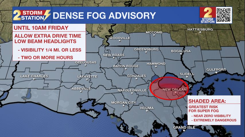 Those traveling around southern Louisiana any morning today through Sunday will need to pay close attention to the forecast and driving conditions. With two on-going marsh fires Southwest of New Orleans, super fog may form in that region. While not a threat in the Capital City, dense fog will still be possible and could limit visibilities to 0.25 of a mile or less at times.