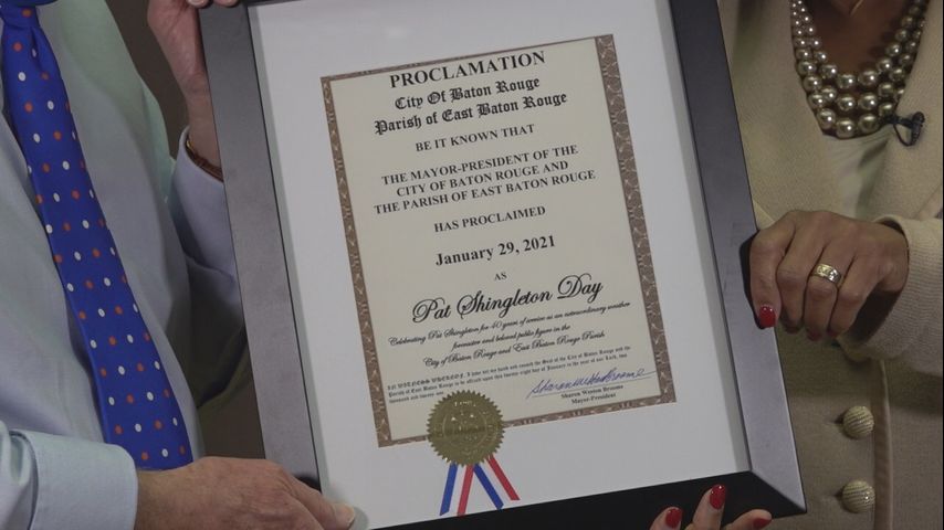 “[We are] celebrating Pat Shingleton for forty years of services as an extraordinary weather forecaster and beloved public figure,” Broome said when she issued the proclamation at the WBRZ studios.