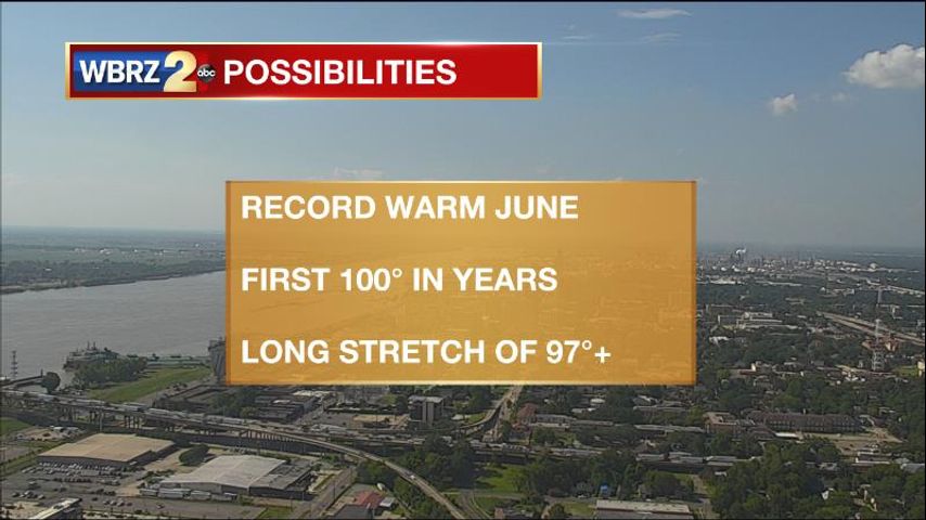 One of the hottest stretches in recent history is ahead. Temperatures are expected to top out in the upper 90s, very close to 100 degrees, for at least the next week. A HEAT ADVISORY is in effect for the WBRZ Weather Forecast Area from 10am - 7pm Saturday. A HEAT ADVISORY means heat index values of 108 to 112 degrees are possible.