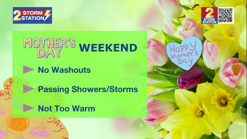 -Mother’s Day Weekend: times of clouds, isolated showers, not too warm