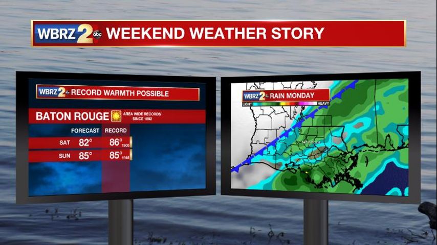 Up Next: It will feel a bit muggy on Sunday morning with lows in the mid 60s. Sunday afternoon will be especially warm with high temperatures topping out in the mid 80s. If Metro Airport can reach 87 degrees, it will be the warmest temperature since October. Just 85 degrees would be good enough to tie a record high that dates back to 1945. An isolated shower or two could develop north and west of Baton Rouge on Sunday afternoon, but the better chance for area wide showers and thunderstorms will come with a slow moving cold front Monday into Tuesday. Cooler air will arrive behind this front but it appears enough moisture will linger on the backside to keep some showers around on Tuesday and Wednesday. Most locations will receive about an inch of beneficial rain through the middle of next week. CLICK HERE for your detailed 7-Day Forecast.