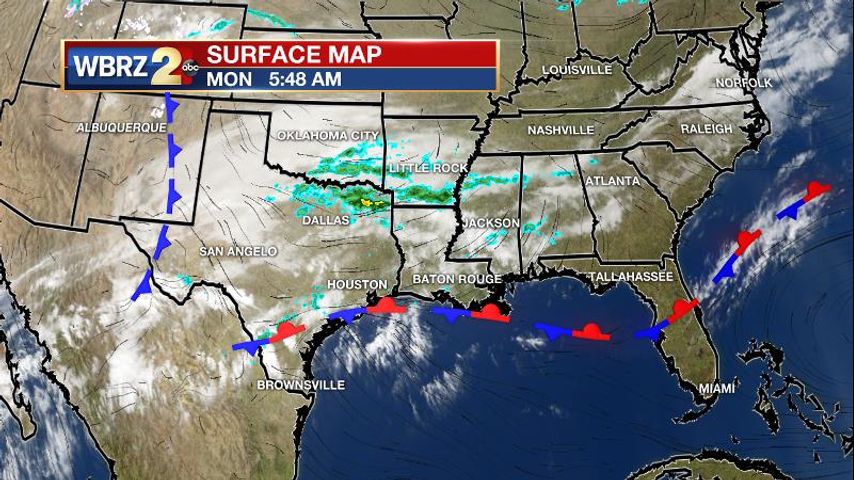 Today and Tonight: Clouds will increase throughout Monday as moisture begins to move onshore from the Gulf of Mexico. As this occurs, especially during the afternoon hours, a shower is possible. Highs will top out in the low 80s. Overnight, a cold front will approach from the west, ahead of it, scattered showers and thunderstorms are expected. The threat for severe weather is very low. One or two storms could create gusty wind in southwest Mississippi. Lows will be in the upper 60s.