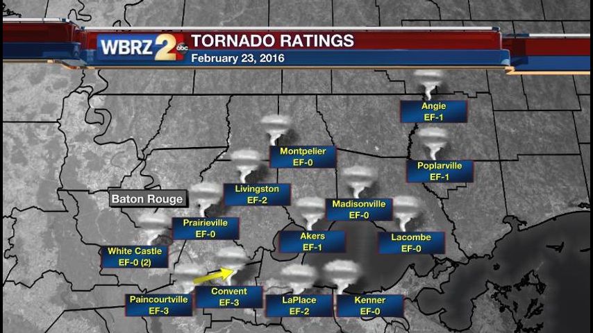 The following is their full report including final ratings, estimated winds, paths and a summary of damage findings. The report has not been altered with the exception of some format upgrades for wbrz.com. Photos have been added.