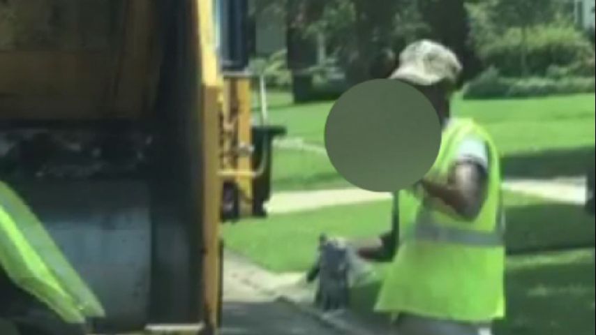 Garbage collector holds up middle finger toward disgruntled customer