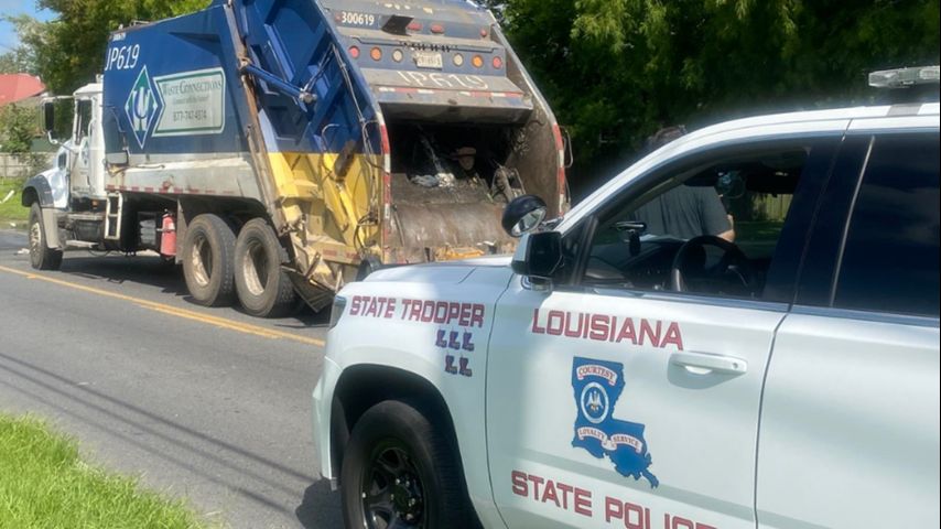 NEW ORLEANS - A garbage man lost his leg after a woman pinned him to his truck Monday morning.