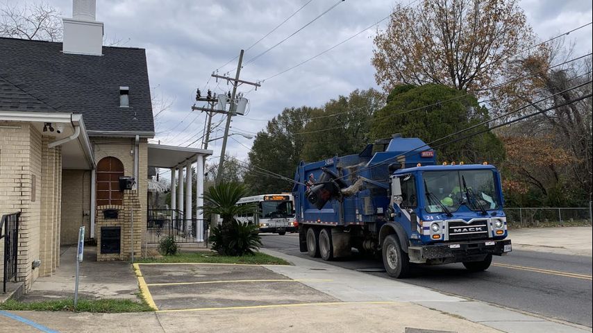 BATON ROUGE - Photos from Friday morning showed a garbage truck with its arm caught in electrical wires overhead.