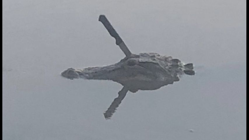 Brazos Bend State Park Attendant Chris Bishop told KRTK the gator isn't in pain and could probably live with the knife in its head for some time.
