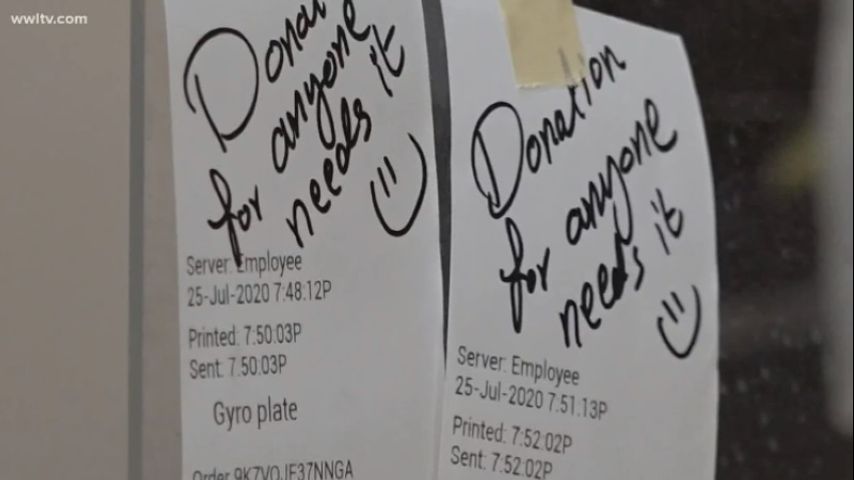 NEW ORLEANS — Since the pandemic began, a slew of generous customers at a New Orleans restaurant have made a habit of purchasing a meal for themselves and an extra meal for a stranger in need.