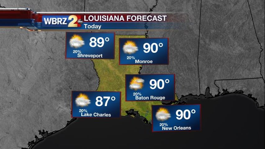 Up Next: Wednesday's weather will be a repeat of Tuesday. Look for some changes to occur as the week starts to wrap. Another day in the 90s will be achieved Thursday though rain coverage is expected to go up. By Friday and the weekend scattered to widespread activity will keep highs in the 80s. Outdoor activities may be a tougher bet into next weekend.