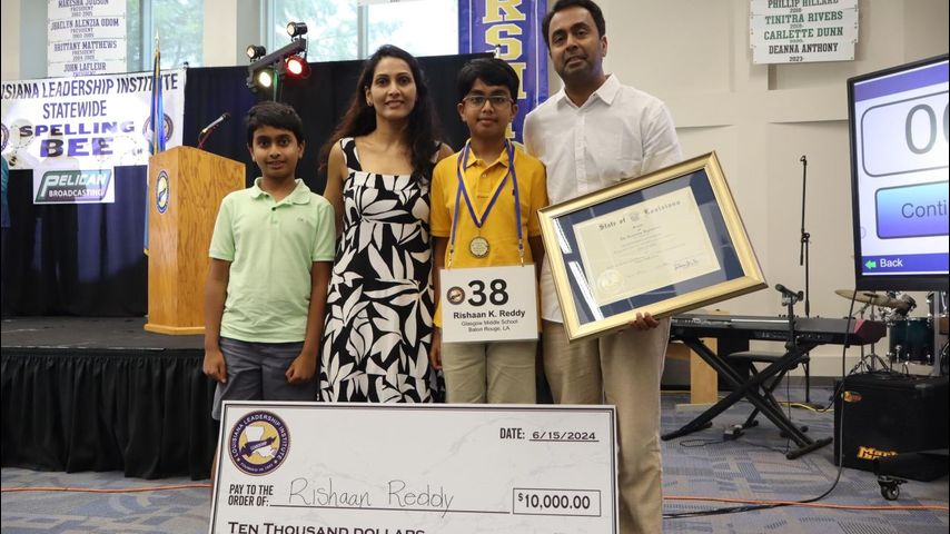 BATON ROUGE - Middle-schooler Rishaan Reddy took home $10,000 after winning the Louisiana Learning Institute's 2024 Spelling Bee.
