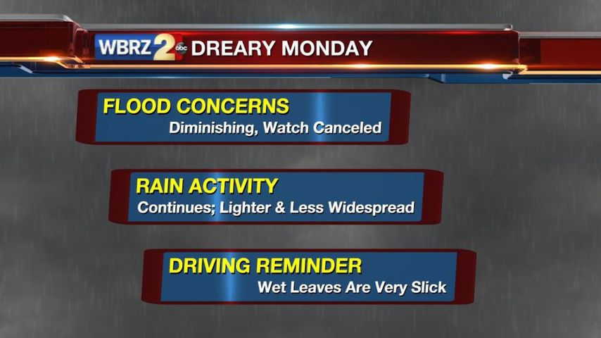 Looking Ahead: Tuesday, many more locations will be dry. While clouds will linger and a spotty shower could pass, the steady soaking will be left behind. High temperatures will make it into the mid to upper 70s. Overnight lows will be in the low 60s as clearing continues. Wednesday through Friday will be mostly clear with highs in the upper 70s and lows in the upper 50s. Expect less humidity as well.