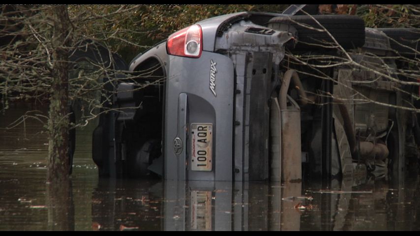 Powell, along with two other co-workers, Jarmar Coleman and Dolan Franklin, ran to the car sitting in a ditch filled with water Friday morning.