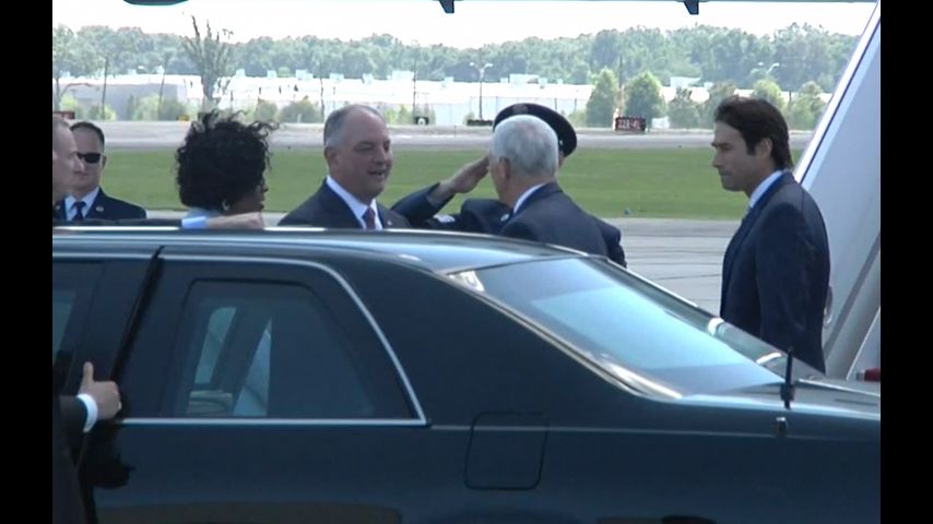 BATON ROUGE - Governor John Bel Edwards greeted Vice President Mike Pence with a letter in-hand as he landed in Baton Rouge Wednesday.