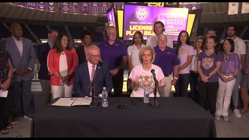 Governor Edwards, Kim Mulkey at PMAC to sign bill for LSU women's basketball license plates