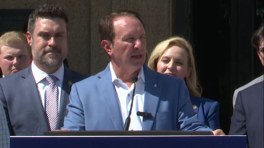 Landry, joined by members of the legislature, Attorney General Liz Murrill and LSU Board of Supervisors members, signed the order on LSU's campus. Earlier in the day he held a press conference announcing tax reforms.