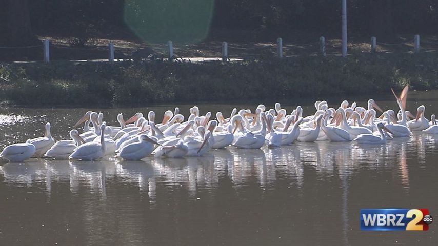 BATON ROUGE - Arriving in time for their own Thanksgiving feast, giant, white pelicans were seen wallowing on the LSU lakes Thursday morning.