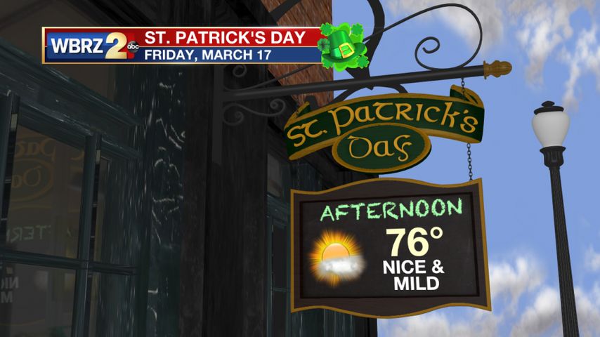 Top of the morning! Definitely warmer today, but still cool in the morning. Highs in the mid 70s. Mostly clear overnight with lows in the upper 50s. Great weather for the Wearin' of the Green Parade tomorrow!